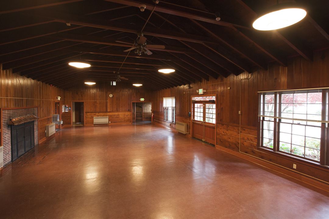 Legion Hall has panoramic views of Port Gardner Bay, patios, lawn, gardens, wood interior, and 2 wood-burning fireplaces. It can hold up to 100 but best suited for 70-75 when tables and chairs are set-up.