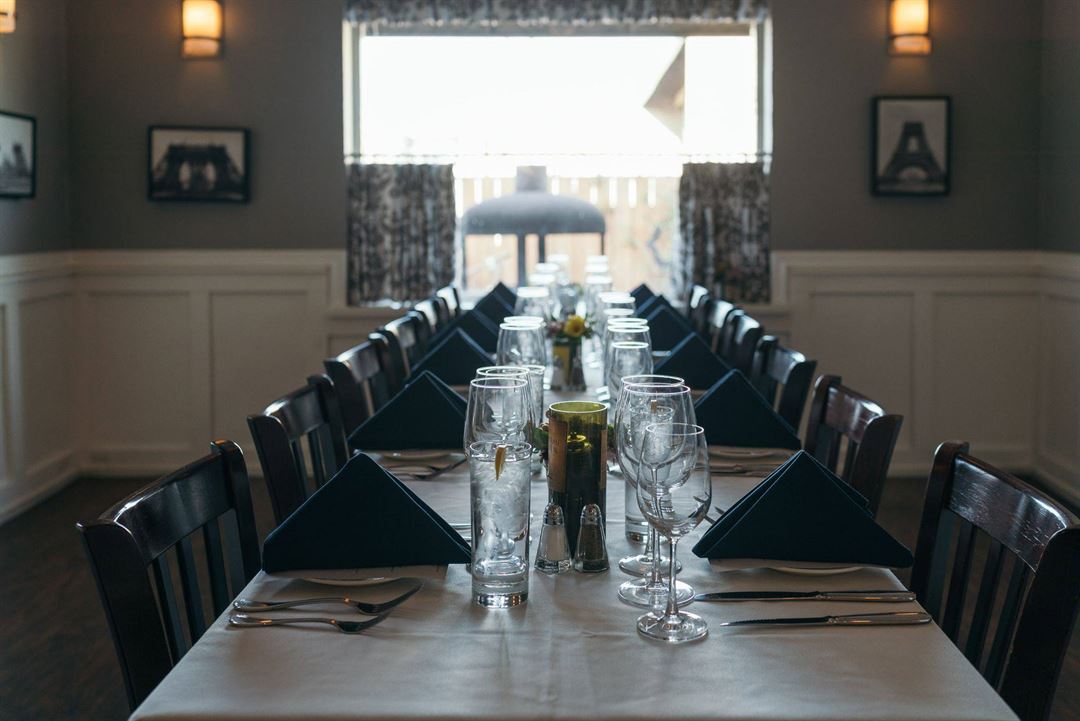 Host your private party or business meeting in our banquet room or outdoor patio and garden area.