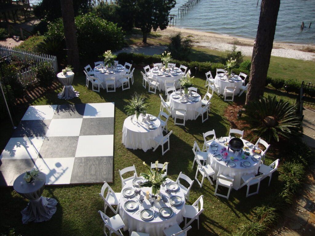 A beautiful stone walkway leads to an ideal spot for the gazebo. The surrounding, lush green affords an intimate, yet ample space for guests. And the view of the bay tops it all. This is a gorgeous setting for a wedding, and we’re ready to help you make it your own.
