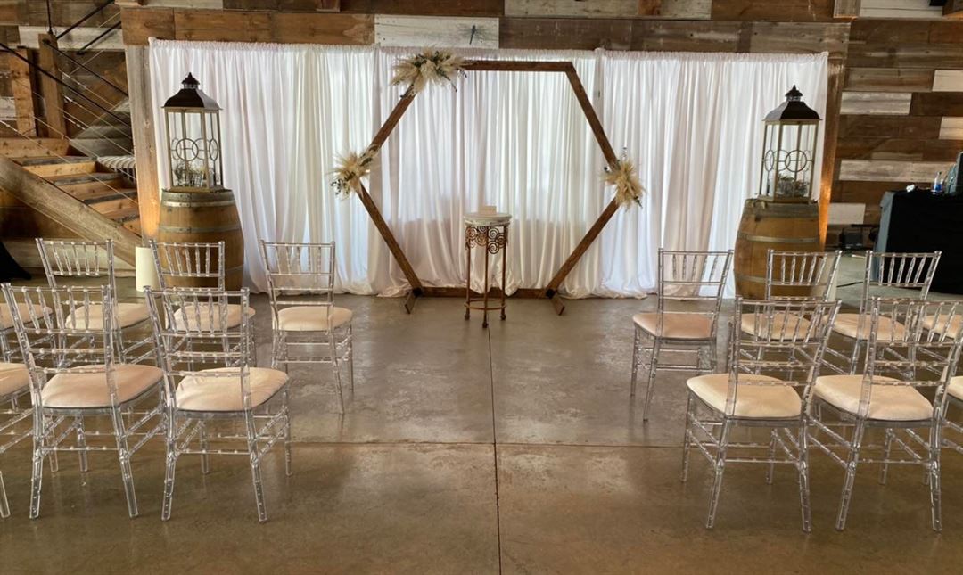 Movies and popcorn. Romeo and Juliet. Wine and weddings. Some pairings just make sense! Sleepy Creek Vineyards allows you and your guests an escape from ordinary. Not your average landscape, our grounds boast 10 acres of vineyards. Our tasting room houses an eclectic collection of tables and chairs with rustic charm. Our outdoor Hitch'n Shack is nestled beside the natural backdrop of our vineyard and our open pasture nearby offers desired seclusion to the outside world. Wine down in our B&W retreat before your event. A lavish dressing area also doubles as a honeymoon retreat.