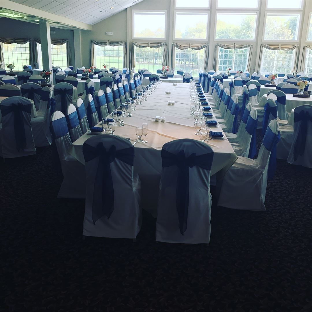Set on one of the most beautiful golf courses in all of Western New York, the Eagle Vale Banquet Facility is the perfect place for an elegant and classy wedding. Its convenient location just outside of Rochester makes it an easy fit for a party from nearly any part of the region, stretching from Buffalo to Syracuse. The rolling hills and lush greens of the course make the perfect backdrop for the big day, and also make for some outstanding photo opportunities for the bride and groom and entire wedding party. With a seating capacity of 400, the Grand Ballroom is the perfect setting within this course. It beautiful construction adds class to any wedding, and its large windows open out to the beauty of the course outside.