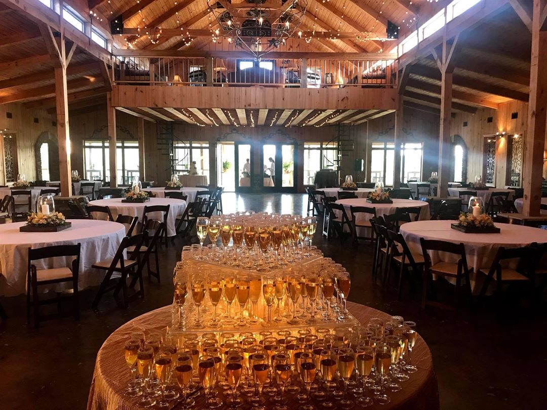 Timber Valley Lodge is well known for the incredible detail inside it's 9,000 sq. ft. heated and cooled rustic lodge in addition to 125 acres presenting a spectacular view. It is designed for any combination of outdoor or indoor events. Your guests will witness beautiful sunsets as it mirrors off the lakes and valley. Not only is Timber Valley Lodge the perfect facility for your wedding, but any entertainment venue from receptions, corporate meetings, proms, parties, or family reunions.