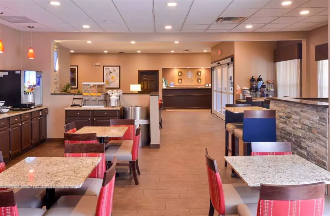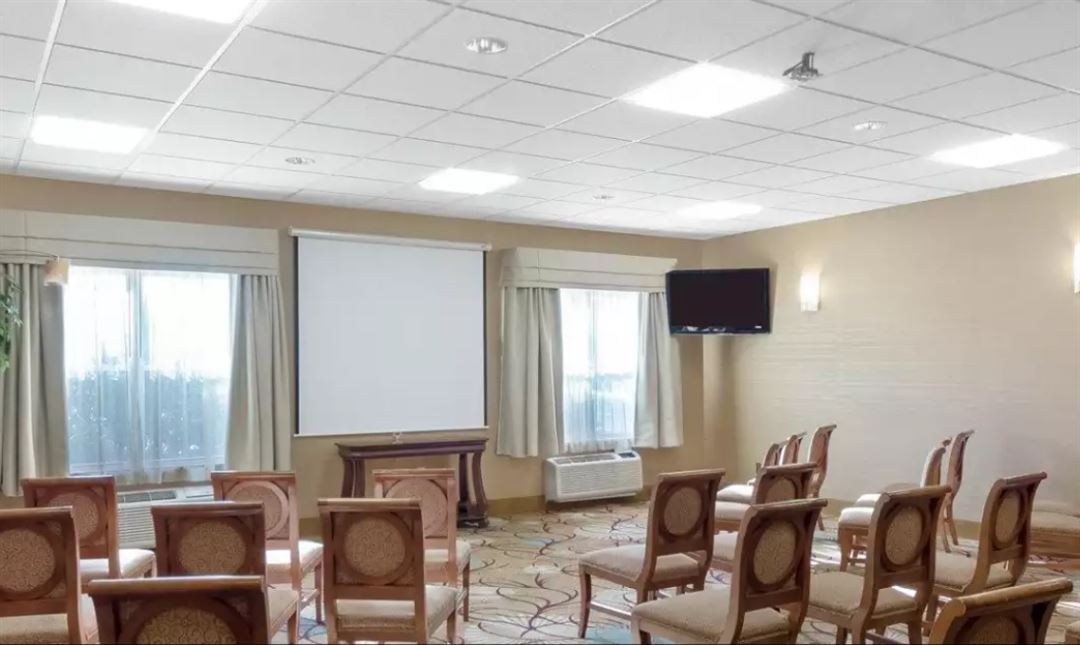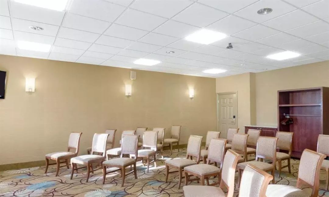 Our meeting room is Fayetteville offers 625 square feet of space. It measures 25 feet by 25 feet and can host up to 66 event attendees. Our friendly staff can rearrange it one of 6 ways to meet your event specifications, such as reception, theatre, banquet, classroom, u-shape and conference. Amenities include: Free WiFi. A business center with access to a computer with Internet and a guest use copy and fax machine.