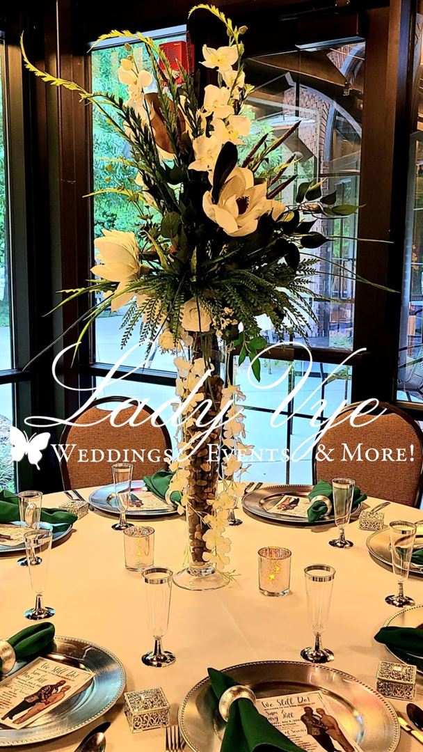 Designs by Lady Vye is a wedding planning company based in Fayetteville, North Carolina. Owner and lead planner Vivian "Vye" Baldwin covers special occasions and event management along the entire East Coast. Together with a talented team, she oversees full-scale solutions and venue design and strives to create unique soirées that are tailored to each couple’s wishes.