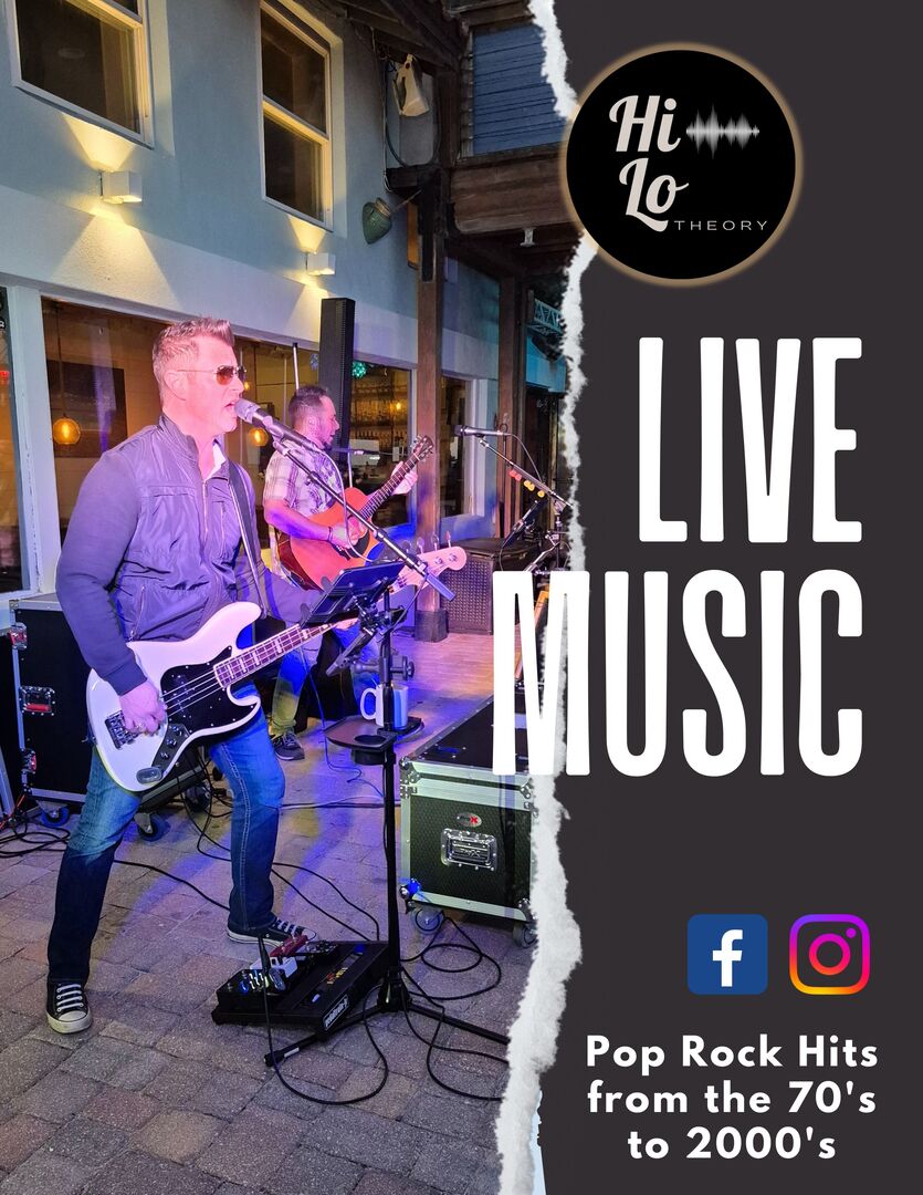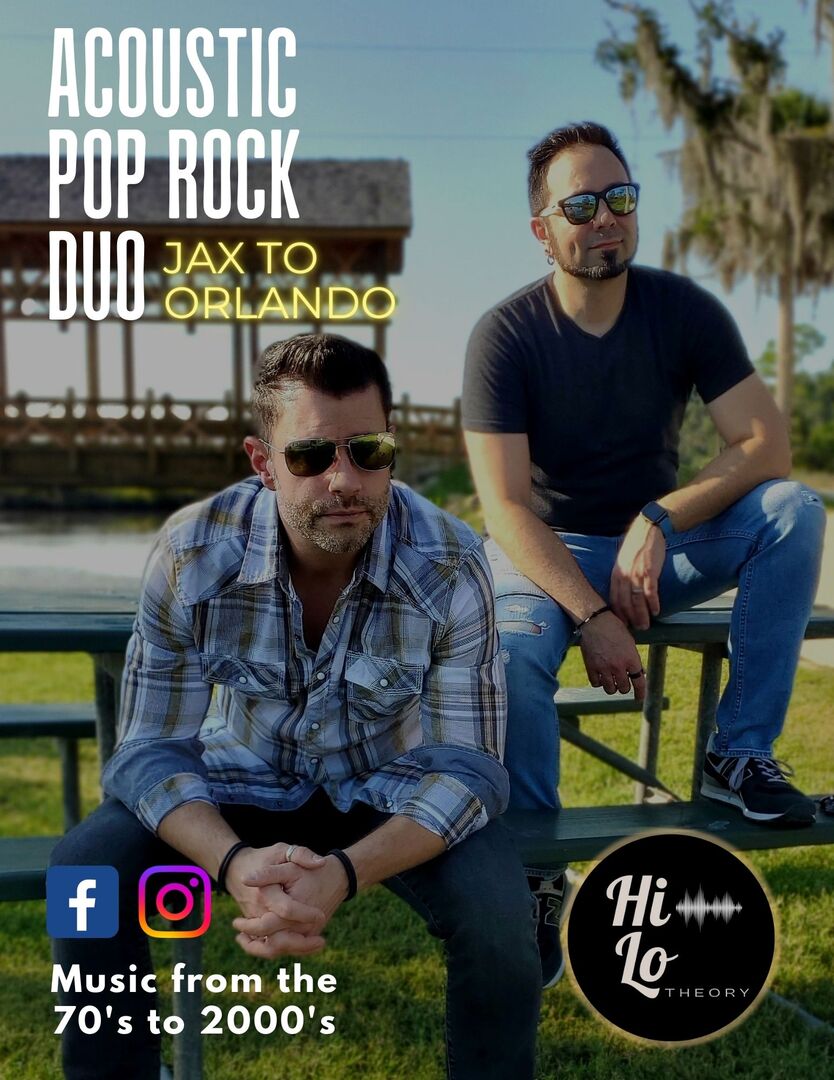 Acoustic duo performing pop rock hits from the 70's to 2000's with soulful vocals and vibrant arrangements, this dynamic duo brings a fresh, nostalgic twist to beloved tunes. Hi-Lo Theory is the perfect choice for an intimate set or a lively performance. Weddings, Social Events, Corporate. Playing Jacksonville -> Flagler -> Daytona -> Orlando...and beyond. Just ask!