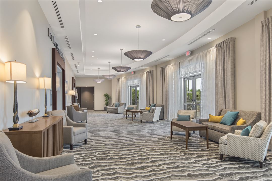 Staybridge Suites has the largest ballroom located in Florence, SC. With 2600 sq. ft. of beautifully decorated event space in "The Bridge" Grand Ballroom consists of an additional pre-function area, an independent lobby, and an outside patio space. Staybridge Suites can accommodate groups, meetings, and events up to 200 people seating and 300 people capacity with limited seating. Also, our ballroom can be divided into 3 individual meeting rooms for smaller events. We also have a complete list of audio visual rentals available.