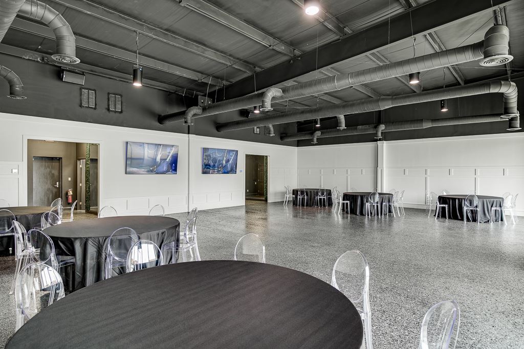 The layout includes a main open area and peripheral spaces for food and lounging, all customizable to your event's theme. Enhanced with advanced lighting and sound systems, our Braselton's Top New Event Venue! is designed to make your celebration unforgettable.