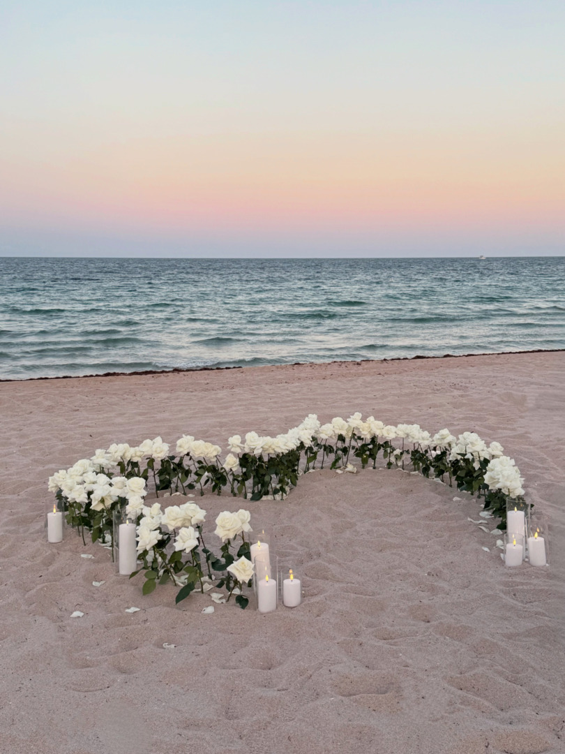 We offer floral event décor for any occasion and full planning of intimate celebrations such as marriage proposals, small weddings, elopements, anniversaries, and romantic dates. Our team has planned and decorated dozens of events across South Florida, creating beautiful and memorable setups with flowers, candles, and thoughtful details.