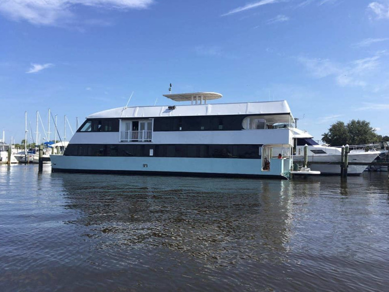 Originally built for golf cruises up and down the intercoastal waterways in the Carolina's, the former Charlestonian boasts massive interior space. Overall dimensions are 76 feet of hull, 20 feet wide and a whopping three stories tall!