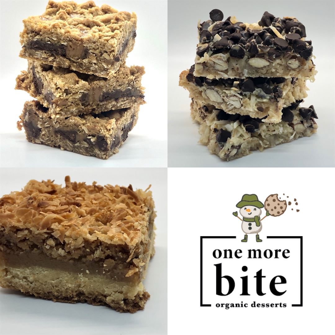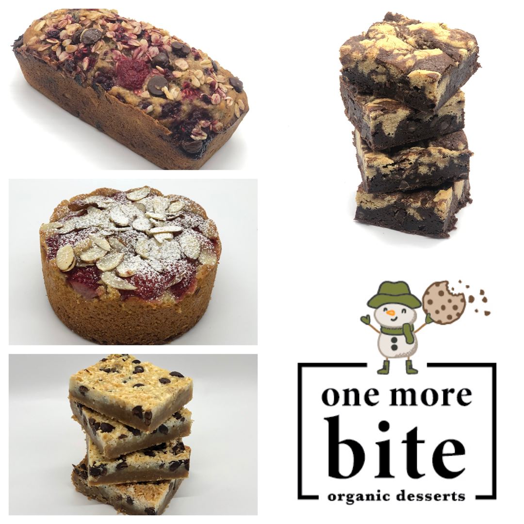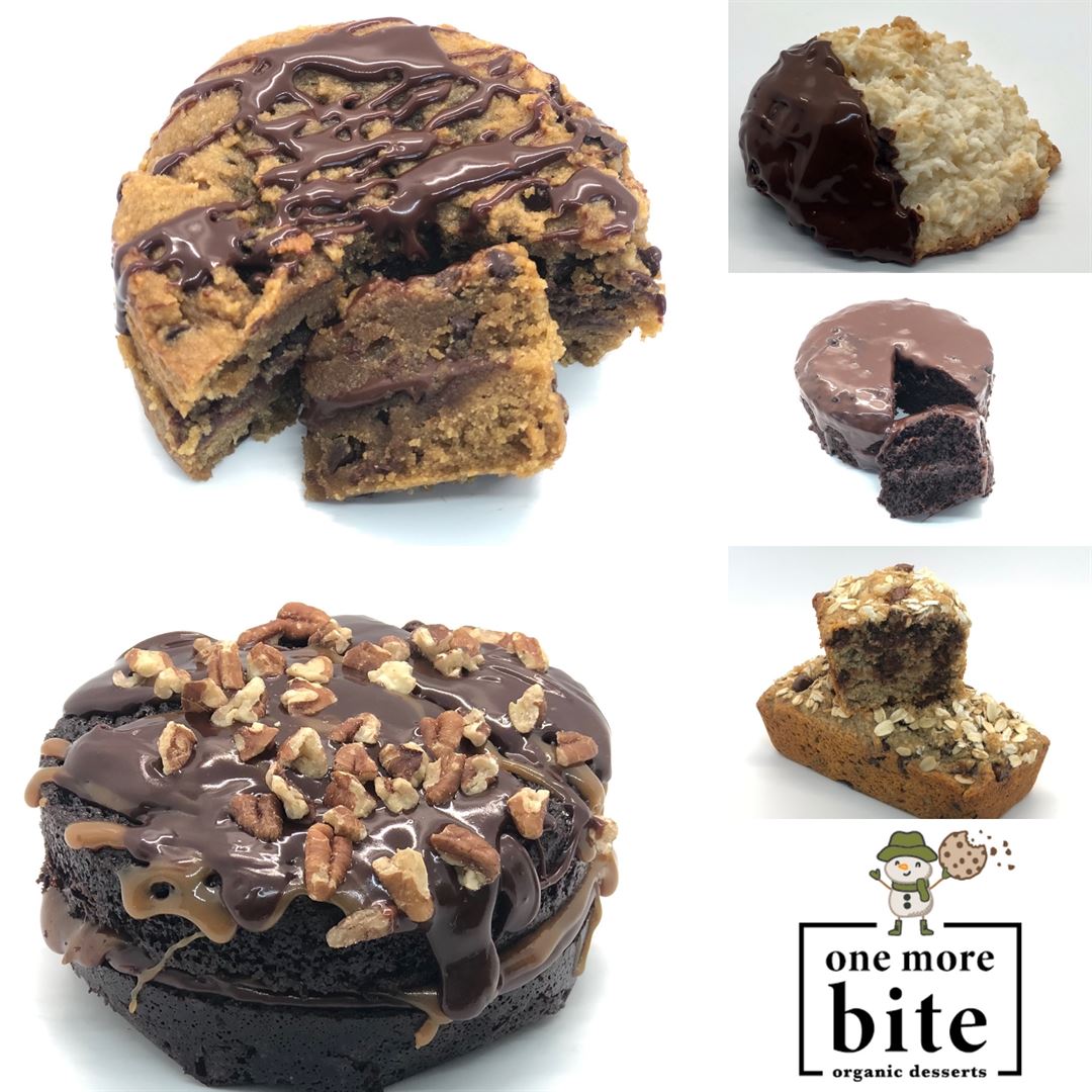 One More Bite Organic Desserts offers decadent desserts for any occasion. We specialize in dietary restrictions offering a wide variety of gluten free and vegan desserts (along with gluten rich desserts) using only the highest quality organic ingredients. All of our desserts are free of peanut & soy ingredients. We have an elegant table set up, along with an outdoor tent set up. All of our desserts are individually packaged and labeled. Desserts can also be presented on platters, cut in bites, for event settings.