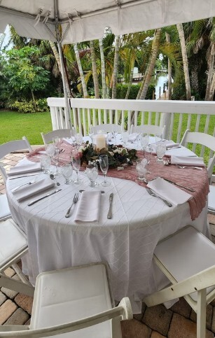 Vista Lago Beach House is a landmark oceanfront bed & breakfast that has been newly renovated to a Full Service Catering & Wedding Venue. This hidden gem is located in the small coastal town of Hutchinson Island, Florida just steps from the beach with its turquoise waters and breathtaking sunsets. It features a grand entrance into an elegant foyer that includes 20ft ceilings, crystal chandelier, a fireplace and wood floors for dining or dancing. Spacious Bridal Master suites included for your special day. It also includes an outdoor veranda terrace with a spiral staircase that overlooks a lush tropical garden with a view of the sparkling Indian River perfect for a romantic sunset ceremony or cocktail reception. Ideal for intimate micro-weddings. Vista Lago Beach House is family owned and operated with over 34 years of experience in the wedding industry. All-Inclusive Catering packages available upon request. Come celebrate your dream wedding with us in paradise!!!!
