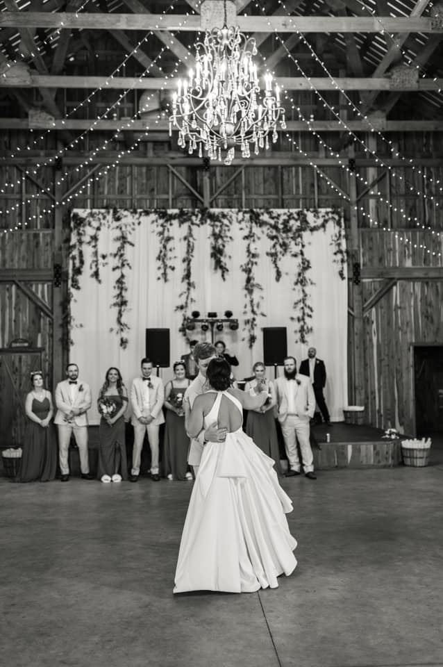 Throughout the main barn hangs billowing fabric which softens the rough texture lumber while still hanging on to the barn appeal. The large 24 x 14 raised stage area offers the perfect setting for your Band or DJ to provide music for dancing the night away. All this is surrounded by a setting fitting for the perfect country wedding or special event. Contact us for pricing and more information!