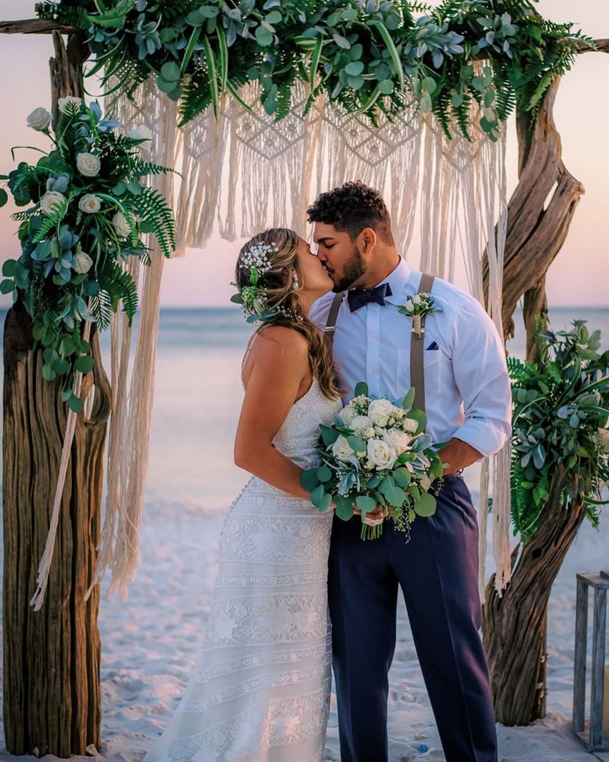 Island Echos is located directly on the spectacular white sands along the gulf coast, and accomodates up to 50 guests. With the rental of this event space, we include sixty chairs, six 58" round tables, three 8' rectangular tables, and five card tables. By renting our event space, you will also have free use of our fully-equipped kitchen, and you will be allowed to use the beach area for your ceremony at no additional cost.