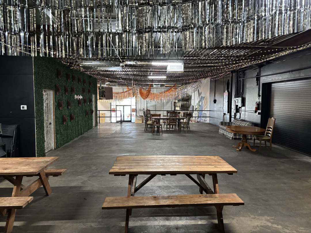 The event space comes with your own private bar that includes up to 6 beers that you pick, private bathrooms, and 3000 sq ft to decorate and use as you like. We have several folding tables that you can use for service or display, picnic tables, folding chairs, barrels, and stools available for your use.