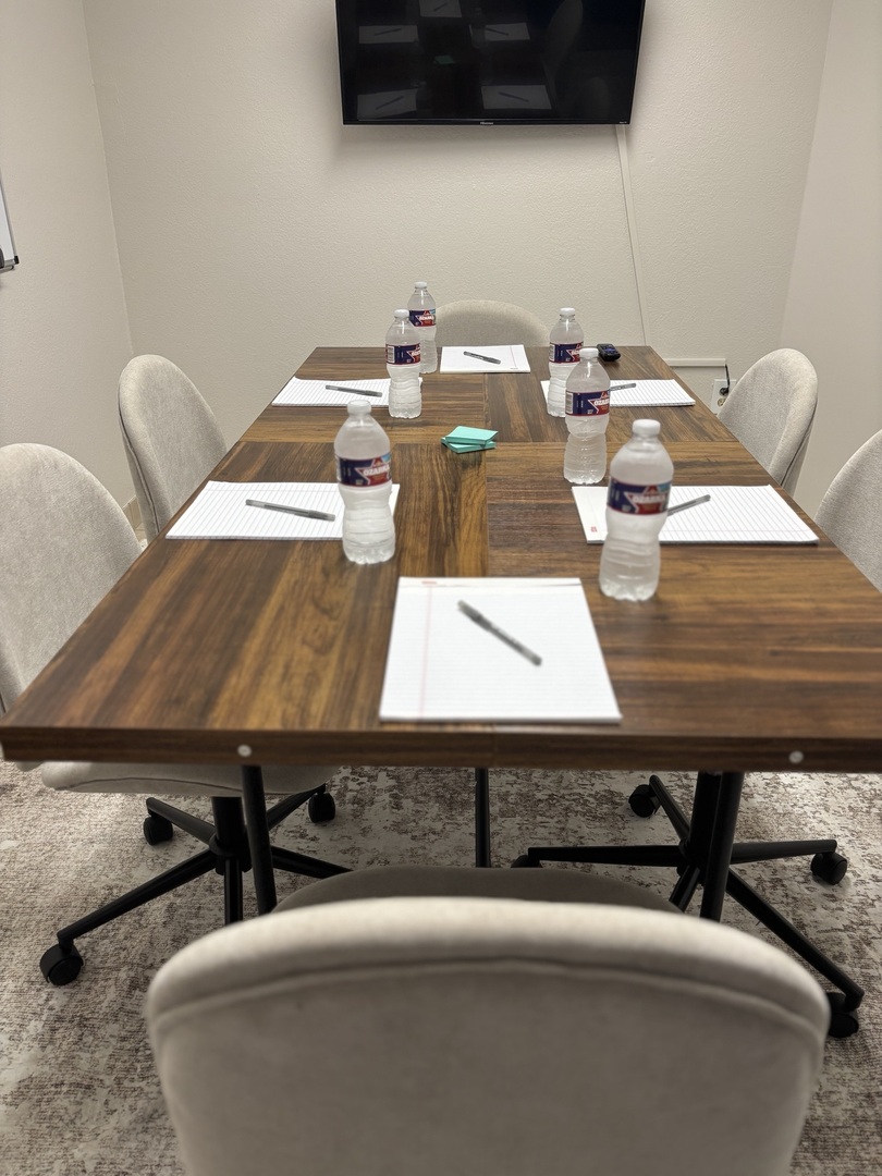 Our brand-new boardroom at Sonesta Simply Suites Fort Worth Fossil Creek is perfect for small meetings and brainstorming sessions. Comfortably seating up to 6 guests, it features a built-in TV, whiteboard, and complimentary Wi-Fi. Parking is included, with refreshment and PM break packages available upon request.