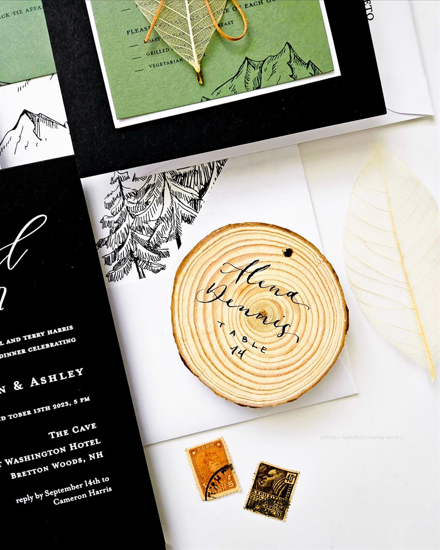 Live, on-site calligrapher personalizing items, gifts, and/or paper goods. Services also include lettering on various surfaces and mediums such as wood, glass, acrylic, and miscellaneous items.