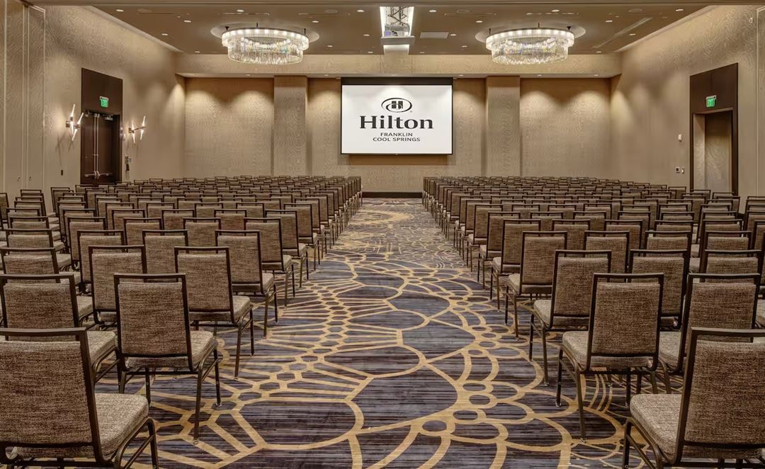 Conveniently located 20 minutes south of Nashville and 5 miles from historic downtown Franklin, Tennessee, the Hilton Franklin Cool Springs is the perfect location to host your meeting or special event. The Hilton Franklin Cool Springs features luxurious indoor meeting space and breathtaking outdoor entertaining space.