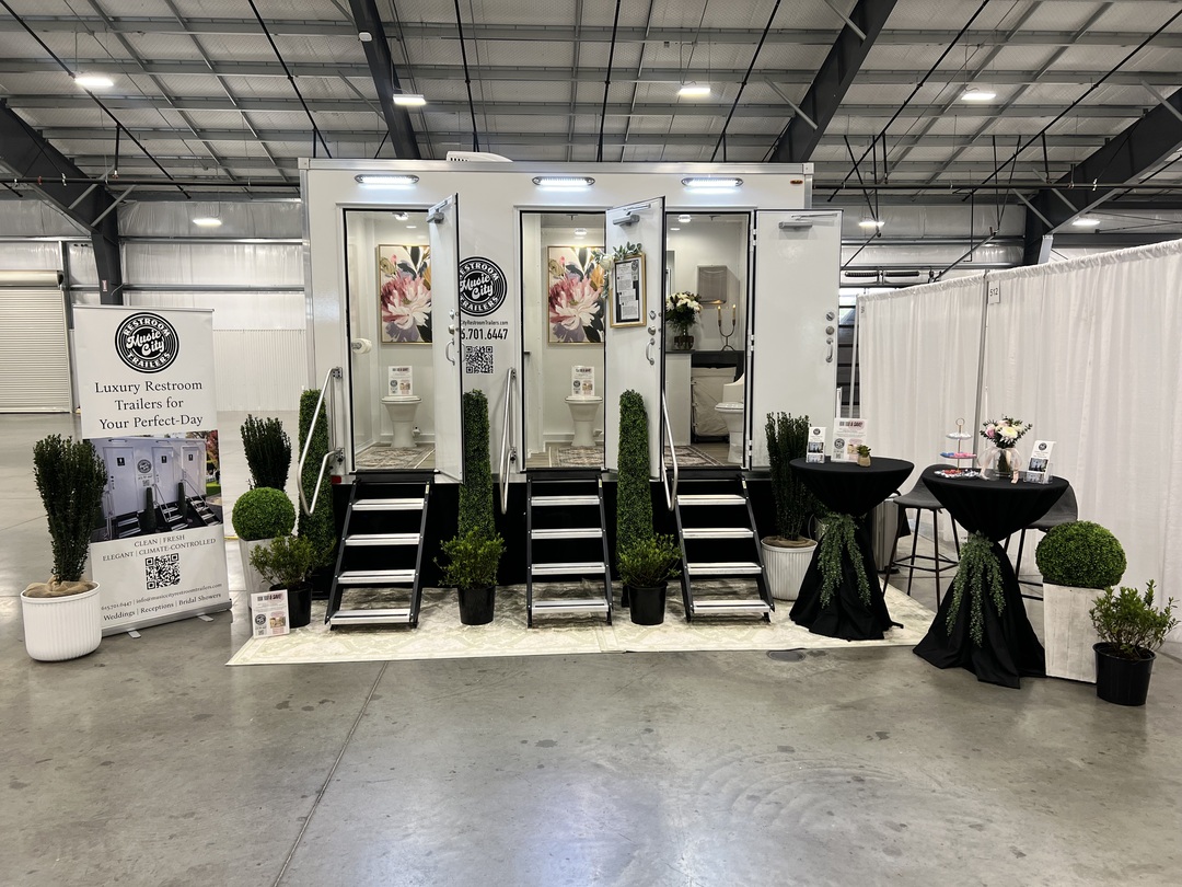 Elevate Your Event Experience. Our luxury restroom trailers are designed to provide a superior restroom experience for your guests. From elegant weddings to high-profile corporate gatherings, our restroom trailers come equipped with air conditioning, flushing toilets, running water, and stylish interiors that make a lasting impression. Book today by calling six(6) one(1) five(5)-seven(7) zero(0) one(1)-six(6) four(4) four(4) seven(7) or visit www.musiccityrestroomtrailers.com