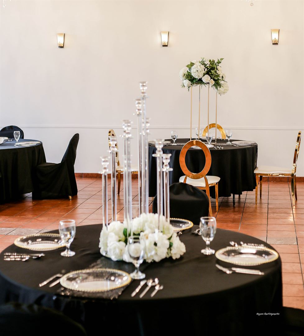 We have a bunch of decor items to choose from, including chairs of various styles, linens, plates, vases, goblets, greenery and more!
