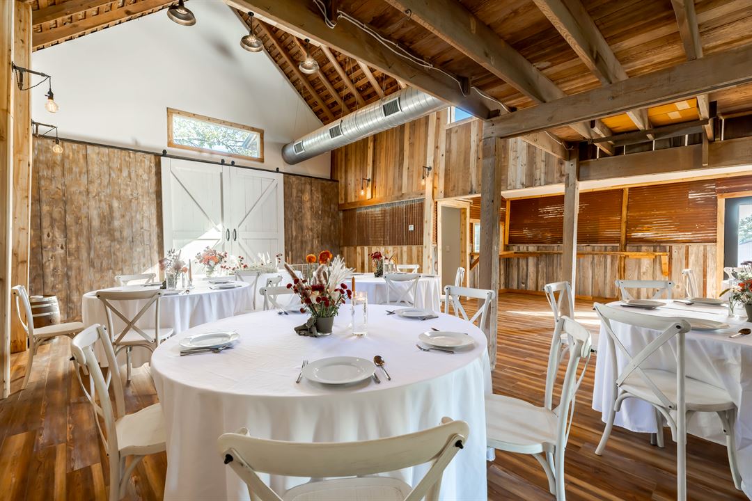 Our charming venue is nestled in the heart of the ranch, surrounded by lush acreage and majestic oaks, offering a picturesque setting for your wedding day.