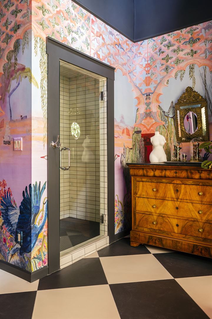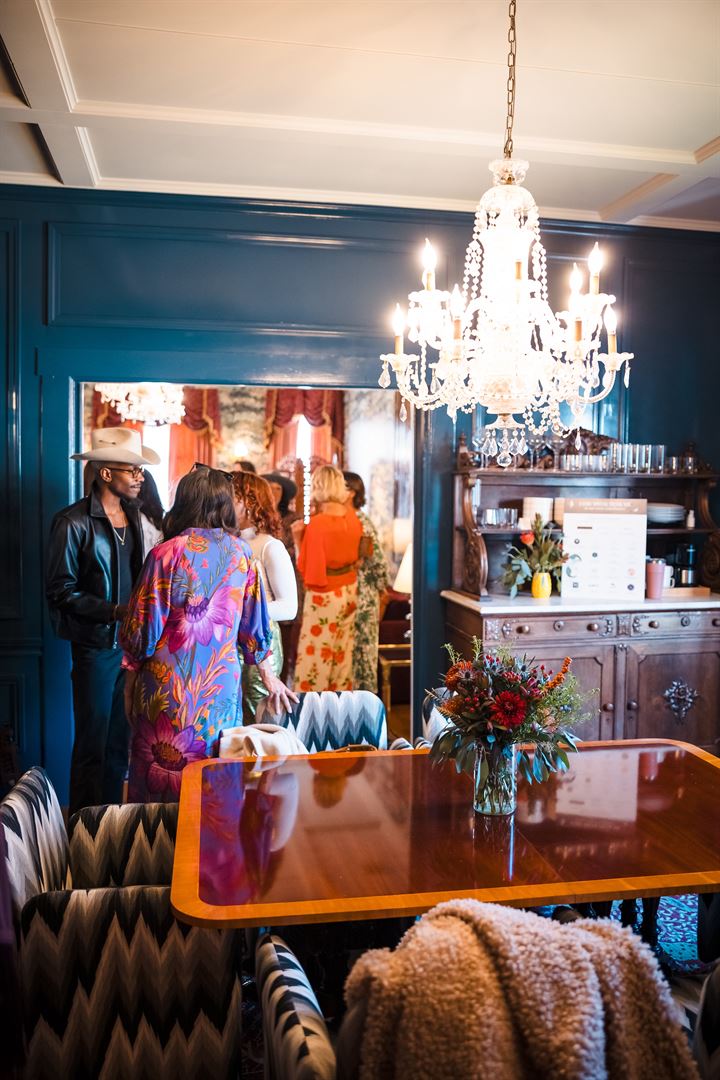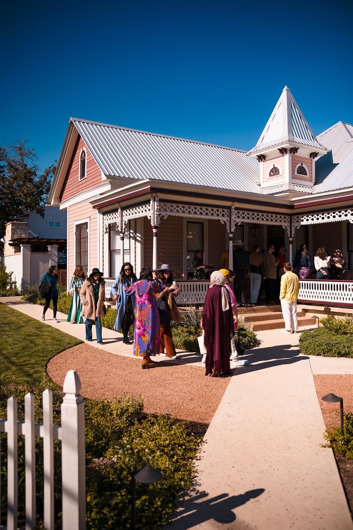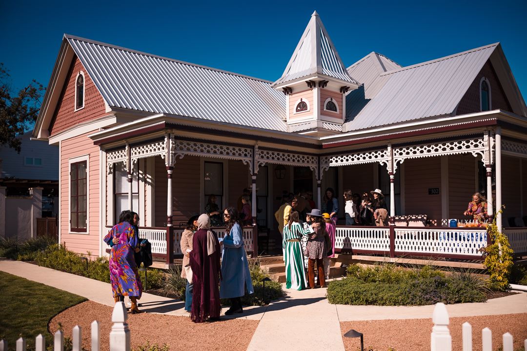 The Menagerie is a luxurious private-estate rental providing historic and maximalist-designed spaces paired with attentive and tailored-care concierge services. It is located a walkable two blocks from Main Street, but provides a quiet restful retreat. This special property has 11 units for a full buy-out accommodating 28 adults, or you can choose individual night stays in our suites from the original mansion, converted barn, attic spaces, carriage house or the 1920s bungalows. The mansion is notably a 1910 Queen Anne Victorian that was home to the first mayor of Fredericksburg, Joe Stein. The grandeur of these spaces is present in its dramatic wallpaper, curated antiques, modern touches, and surprise details at every turn. Each of the spaces include kitchenettes with curated complimentary mini-bars and coffee stations with refrigeration and microwaves. The mansion has three bedrooms and two bathrooms and can sleep six guests. It also includes a large piano room, dining room, and private wrap around porch. This space also has a full-size kitchen with an oven, stovetop and full-size fridge. There are six well-appointed suites with historical heritage near the mansion. Each suite sleeps two guests and includes a fireplace. In addition, there are four bungalows with bold and eclectic treasures. Three of the bungalows can sleep two guests, with one of the two-bedroom bungalows sleeping four with a larger kitchen and fridge. The property is well appointed with an ice haus and other special details and treats. Enjoy the shared spaces for meetings, birthdays, yoga retreats, catered dinners, and more! The outdoor, shared spaces include: the Pool, Fireplace Cabana, and shared Lawn with community seating. If your group rents the Rapture Mansion there is also meeting space in the living and dining room.