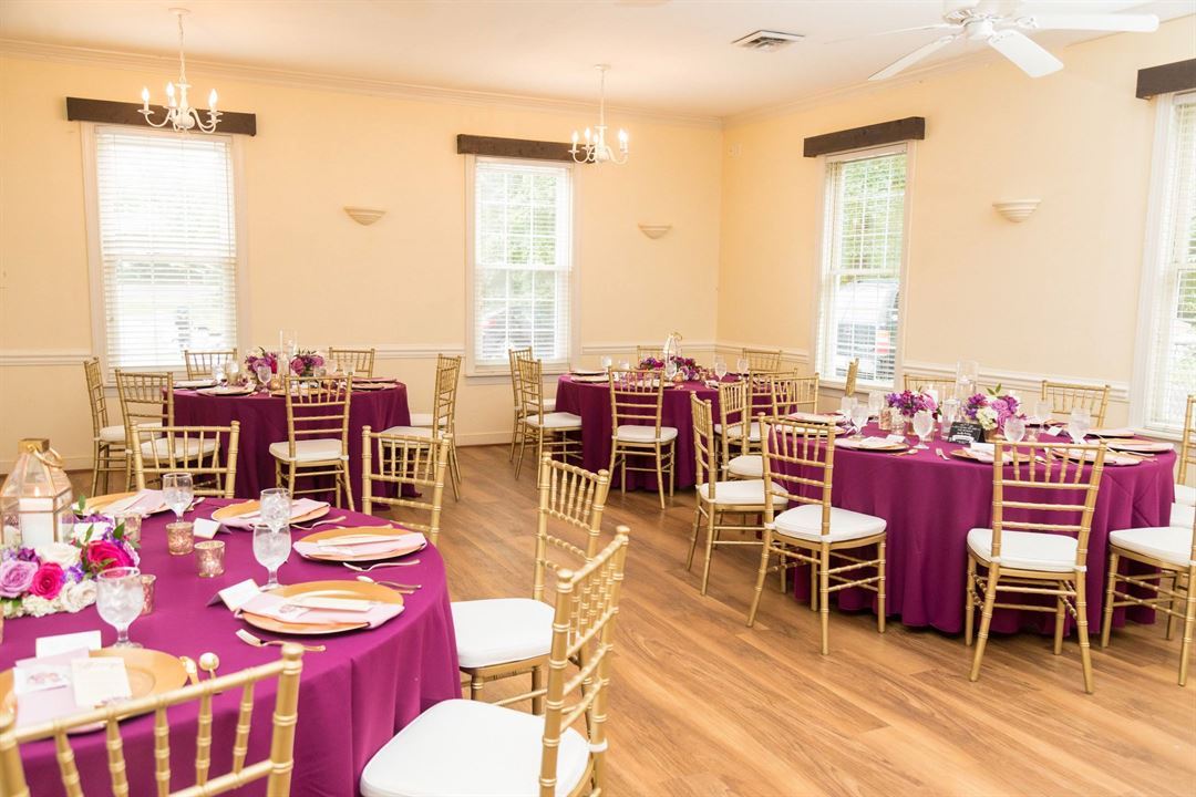 The clubhouse features a newly renovated bar and panoramic views of our beautiful grounds, located within the picturesque setting of Curtis Memorial Park in Stafford County, Virginia. You'll love our outdoor veranda, which provides the perfect setting to begin your special affair. Our Twilight Room comfortably accommodates banquets and parties of up to 120 people.