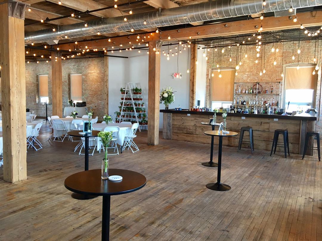 The Back Office on second floor as a rentable business center, event space, and lounge perfect for corporate events, showers, ceremonies, small receptions, music and entertainment.