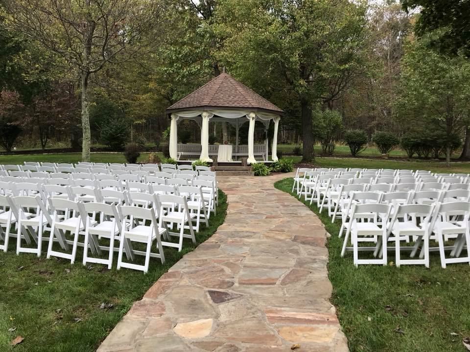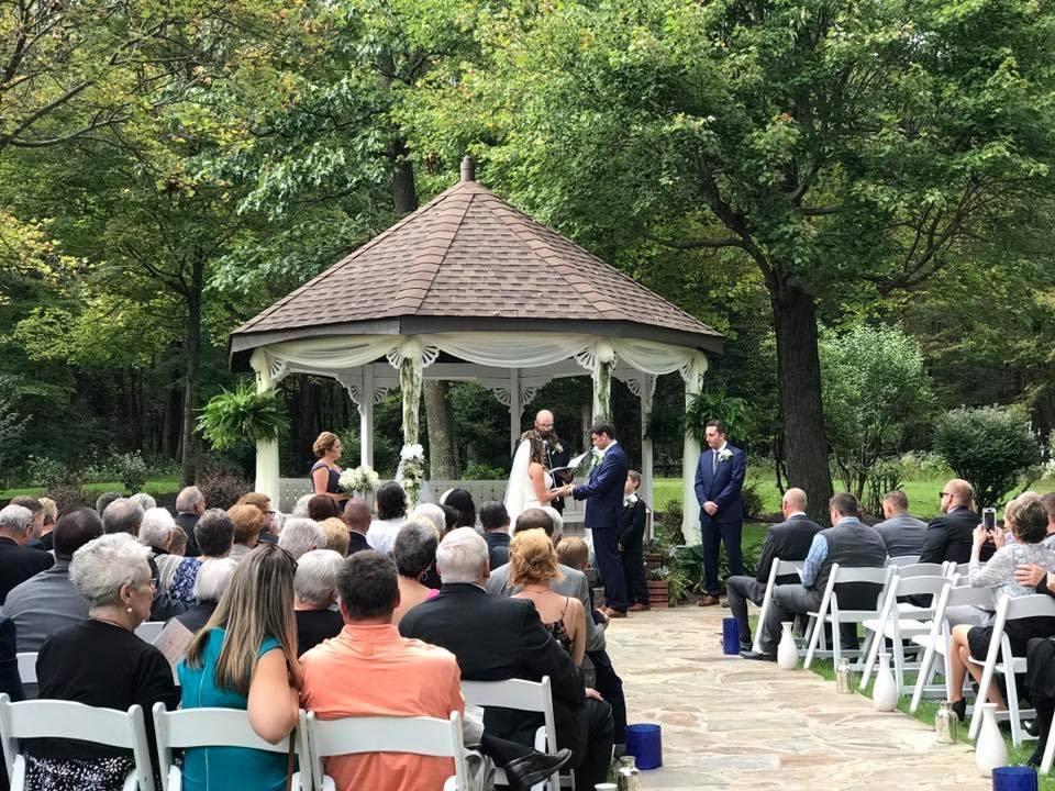 Celebrate your wedding ceremony in our intimate, private venue setting among the beautiful grounds at The Grand Estate at Hidden Acres. The Grand Estate provides the perfect backdrop to the beginning of your new life together. We assist you in the complete planning and organization of your special event assuring that every detail is attended to. Join the numerous couples who have celebrated a wedding, exchanged vows or became engaged on our beautiful property. Our exceptional gardens include a cascading waterfall draped with vibrant trees and colorful blooms, and a 15-foot gazebo for exchanging your vows. During your reception, guests will enjoy the celebration in the comfort of a beautiful white tent, complete with chandeliers and cloth draped tables which have all been artfully arranged.