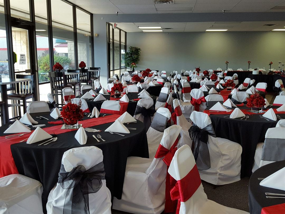 Our banquet hall is available to all of our catering clients to rent out for their party or event. Attached to our facilities, the hall seats up to 200 guests, and we can decorate it to match your theme. We can add tulle chair decorations and beautiful centerpieces to our existing banquet tables to make the hall reflect your personality. Our hall even features a spacious dance floor that you and your guests can take advantage of.