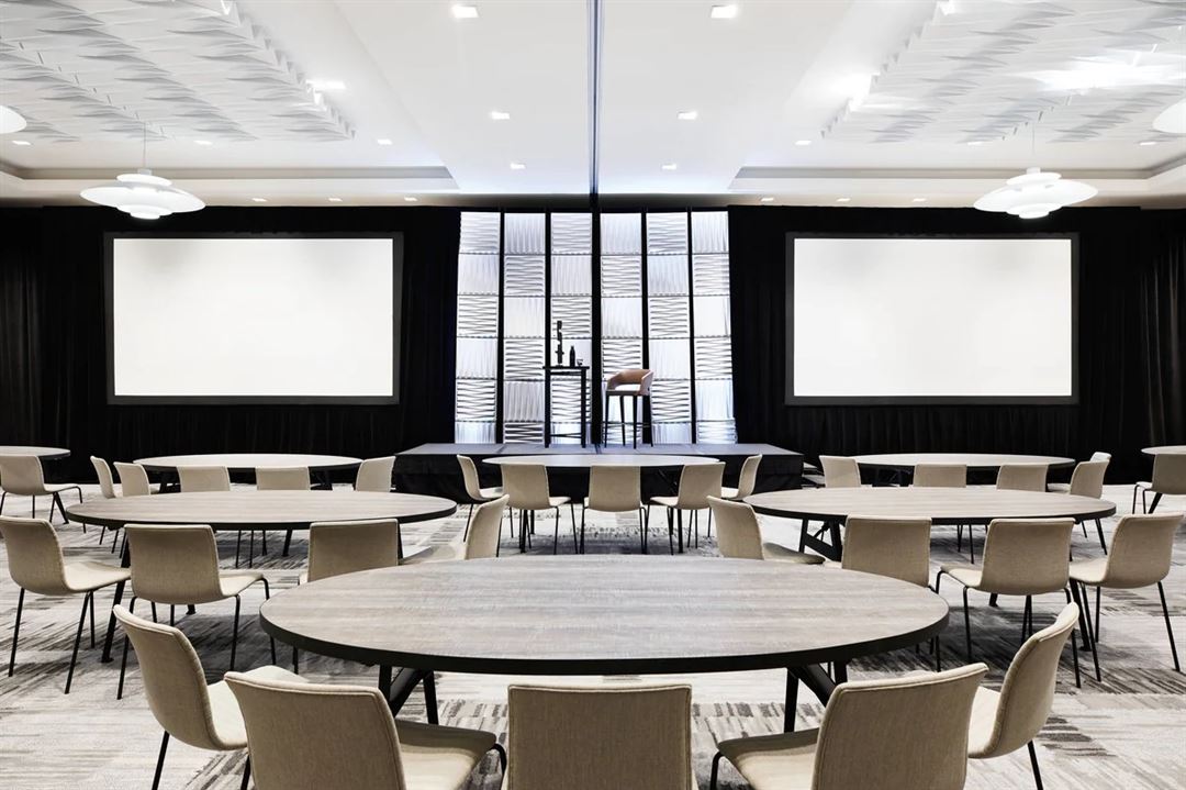 Explore our versatile space, which can be used for seated conferences, corporate receptions and more. The ballroom venue can be divided into two spaces, and the boardroom is ideal for smaller meetings. Enhance your event with a customized banquet menu, and let our party planners manage every detail.