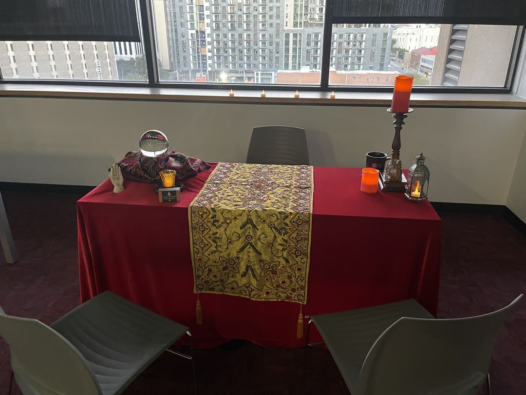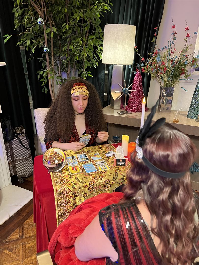 My fortune telling experience is a unique cocktail of exotic, fun, and mysterious and showcases the beauty of exotic mysticism. Tables beautifully adorned with antiques, candles, and decor blend with my eye-catching garb to give an experience that is as visually captivating as it is spiritually mesmerizing.