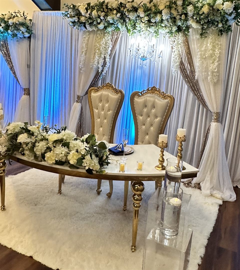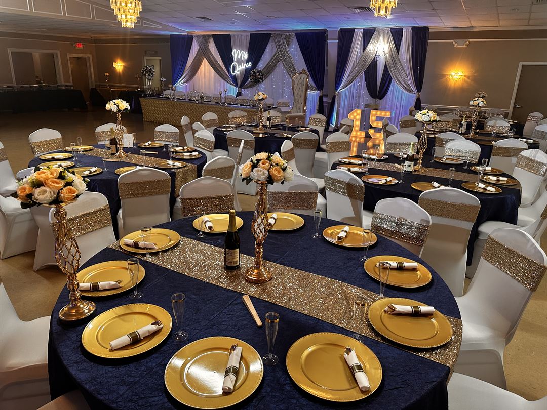 We provide different equipment rentals for decorations like tables, chairs, linens, centerpieces, backdrops, cylinders, trees, flowers, and more!