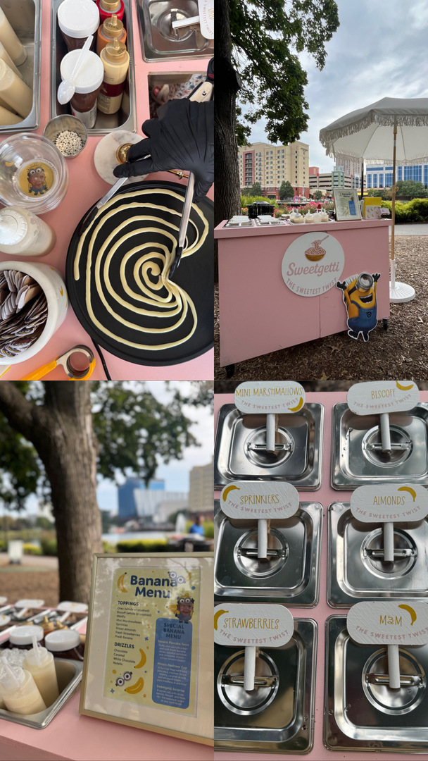 Sweetgetti brings a one-of-a-kind dessert experience to weddings and celebrations with our interactive crêpe spaghetti cart. Instead of traditional plated desserts, we serve freshly made crêpes transformed into delicate “spaghetti” strands, topped with delicious drizzles, fruits, and customizable toppings.