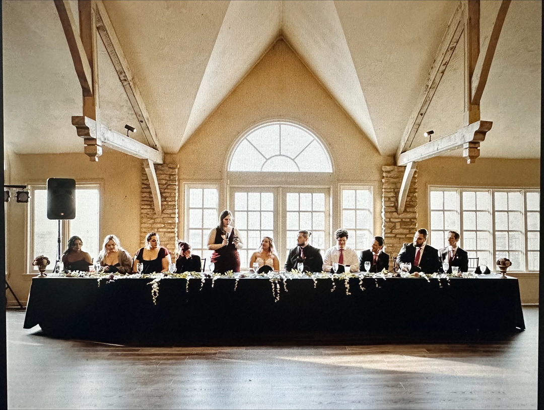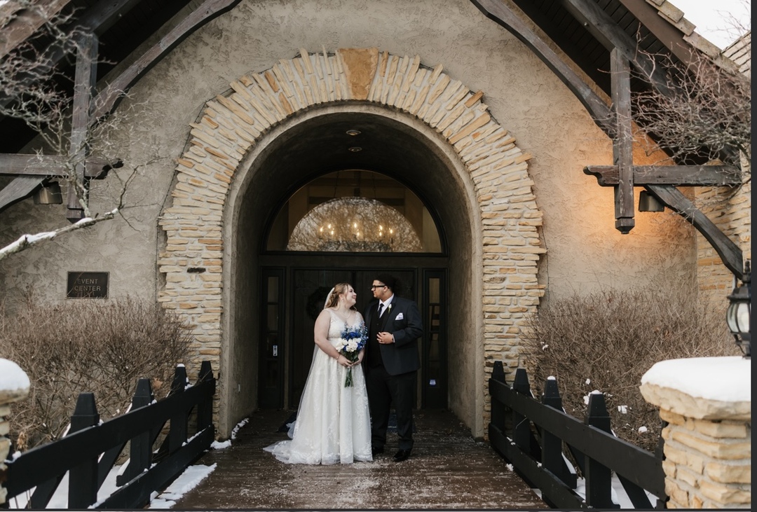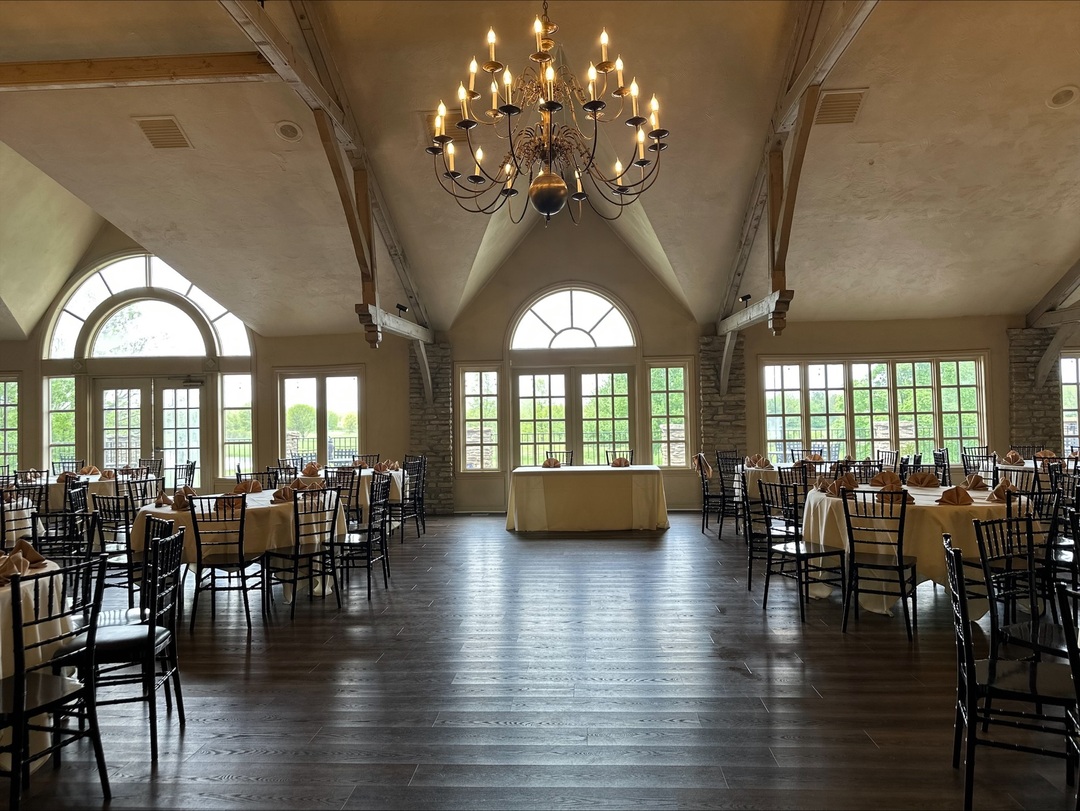 Our charming Ballroom is adorned with elements of stone and wood, enhanced with a cathedral ceiling and fireplace. A tastefully appointed bar and dance floor complete the room. Need a better view? Step through double french doors onto a balcony with a sweeping view of the golf course, a perfect location to view wedding ceremonies in the garden below!