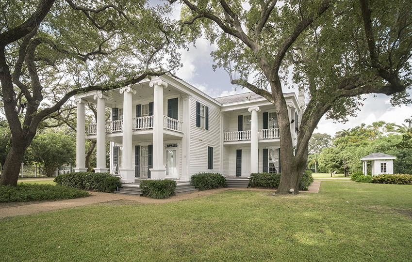 Grounds of the Historic Menard Complex, which also includes the 1838 Michel B. Menard House, Yard, Gazebo and detached Menard Hall. Galveston’s oldest home, the Greek revival Michel B. Menard House provides an intimate setting. The house, built in 1838, features furnishings that all date from the first half of the 19th century (1800-1850s). They are of the federal, empire, regency, Biedermeier, and William IV styles, as interpreted by American, English, French and German artisans. Carpets, drapes and upholstery fabrics are reproductions appropriate for the period 1830-1850. Outside, grand ionic columns provide a backdrop for photos. Shaded by stately live oaks, the landscaped grounds and gazebo also are available for outdoor functions.
