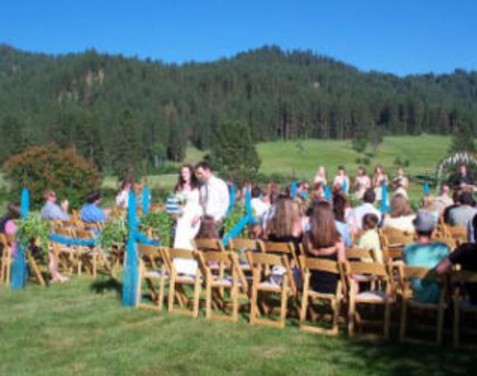 Yes! We can accommodate your Wedding and/or your Reception, too! Surrounded by the breathtaking scenery of the mountains, and the Middlefork of the Payette river, Walk on the Wild Side is one of the most extraordinary, and romantic settings for an Idaho Wedding or a Civil Union. It doesn't matter if you want a summer wedding surrounded by wildflowers or have a blanket of snow-covered mountains as your backdrop, we can provide that for you.