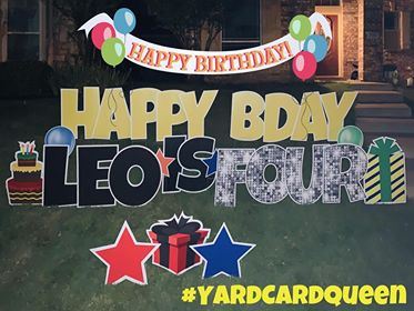 Yard Card Queen will fulfill the need for celebrating that extra-special occasion. We are thrilled to bring smiles to the community through unique, quality, personalized yard greetings. We believe everything is worth celebrating, and there’s only one way to do it... with a bunch of yard signs, of course!