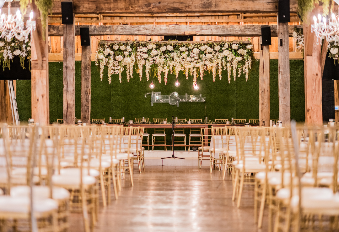 Our weekend wedding package includes the barn, the farmhouse that sleeps 24 guests, a clubhouse with a basketball court, tables, chairs, and day of wedding planner.
