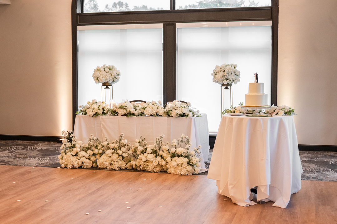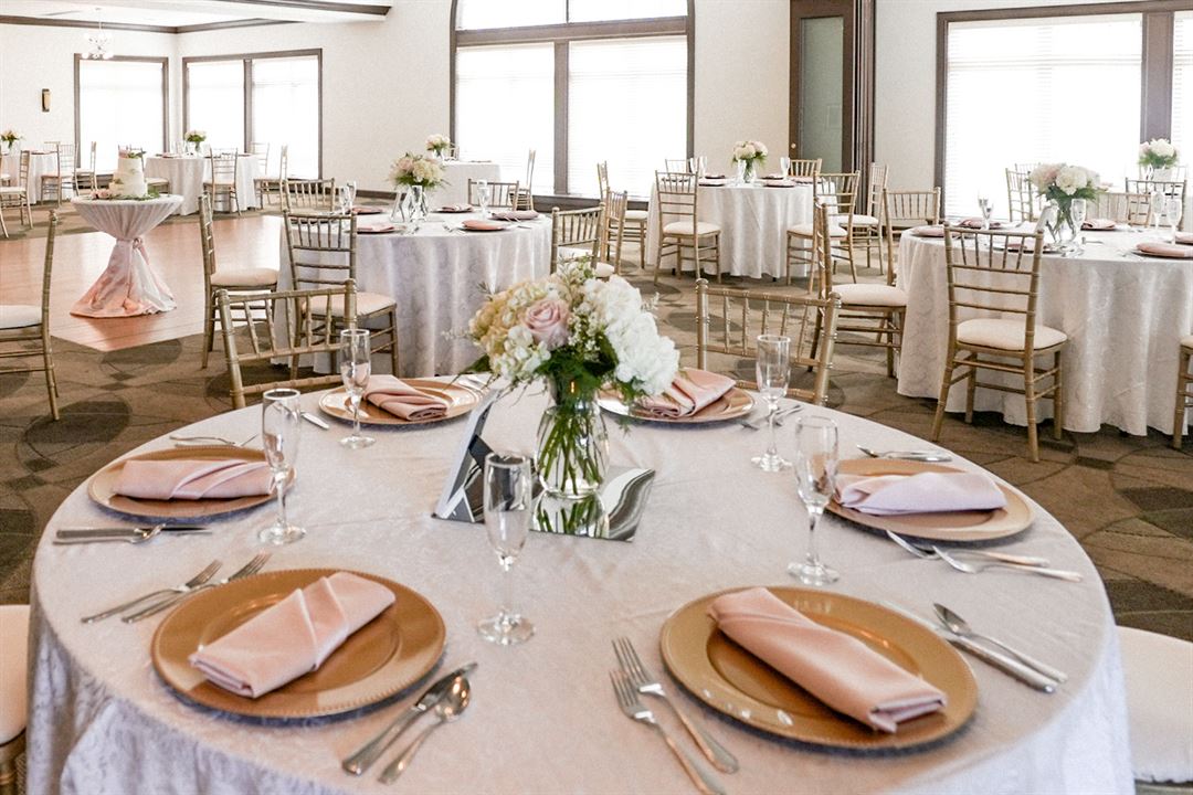 At Treesdale Golf & Country Club, you can host a wedding celebration in one of many private dining rooms. All event rooms are notable for their sleek craftsman style and chic, renovated features. They are spacious, neutral-toned, and have elegant light fixtures. Polished wood floors and arched windows with generous views of the surrounding golf course brighten up any wedding celebration.