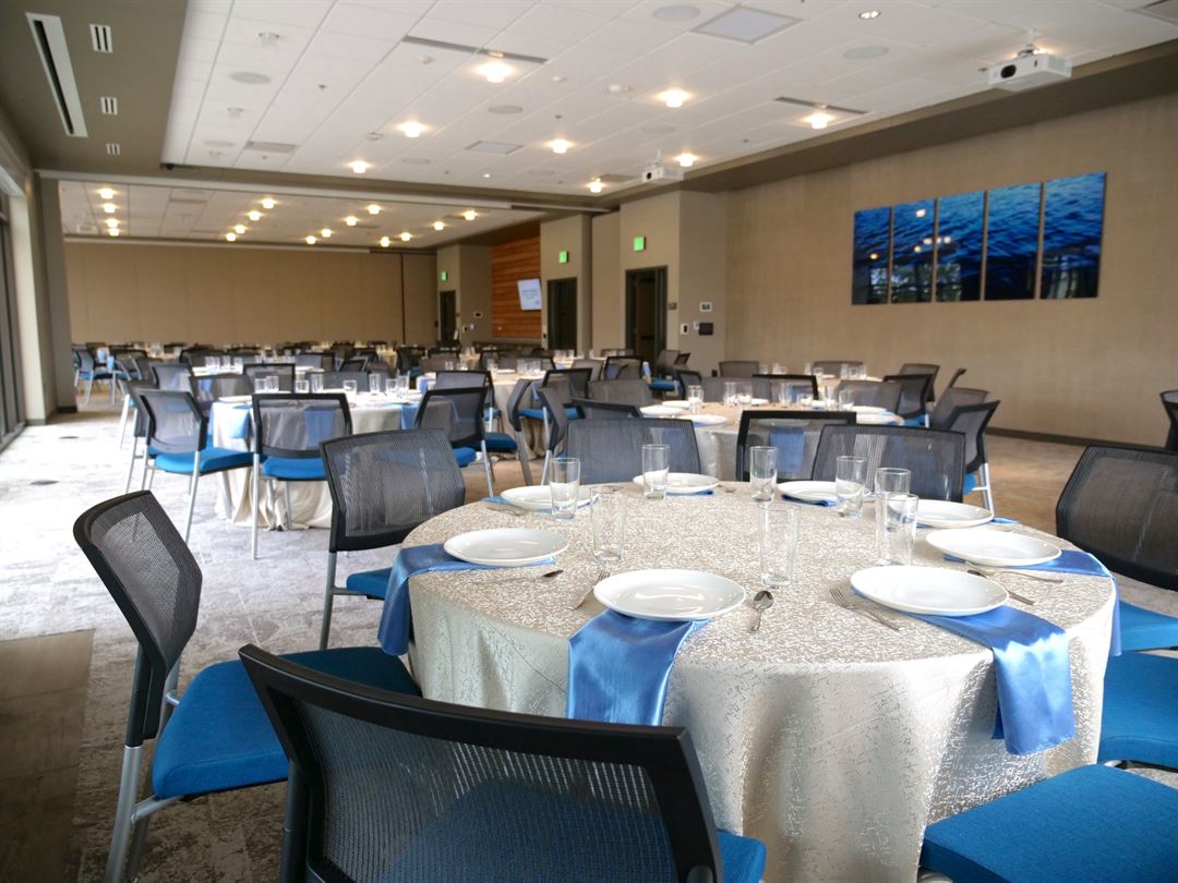 Gig Harbor's Ocean5 offers several indoor private event spaces to choose from to make your event unique and stylish. On the second floor of Ocean5 you'll enjoy the glass fireplace, patio access and abundant natural light. On the first floor you'll find the stunning Salish Seas Rooms with soaring ceilings and access to activities. These rooms are fit for a warm and intimate atmosphere. The private rooms are fully customized to fit up to 350 guests depending on reception and ceremony needs, or can be split into smaller spaces for intimate gatherings.