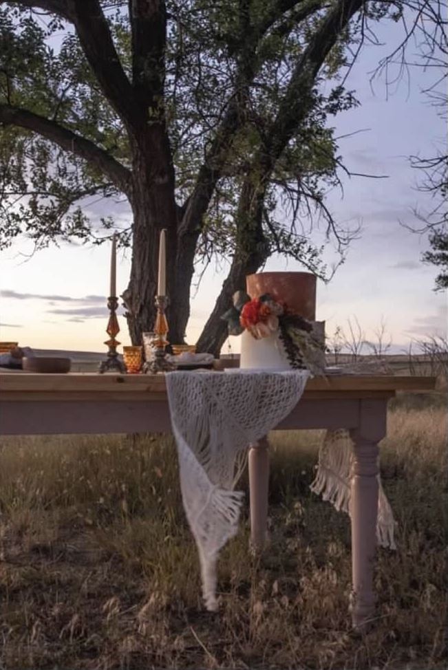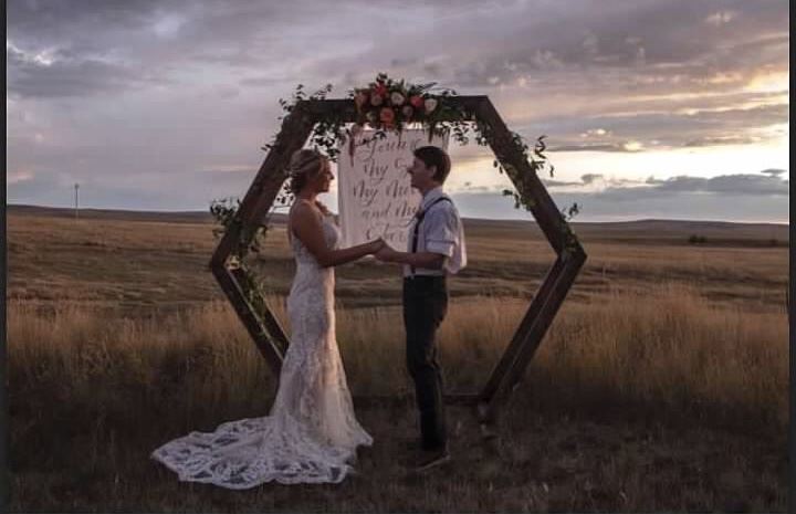 Prairie Sky has two reception areas: the 2,500 square foot Fireside Room that is warm, rustic and elegant, and the 5,000 square foot Grand Hall, beautiful with rustic & elegant charm. Plenty of room for all your guests, dancing and reception. The Homestead offers a beautiful 70 acres set in the high prairie of Northeastern Wyoming. Gorgeous views of skies that never end for your wedding’s perfect backdrop.