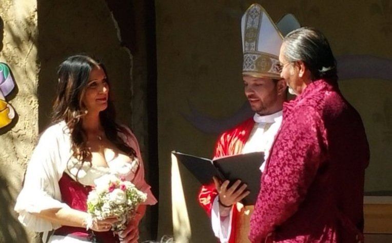 I loved having my wedding at the Arizona Renaissance Festival! Unlike the traditional "white wedding" that most couples seem to choose, mine was unique, fun, and created positive memories for everyone involved. No one was bored, not even the small children who attended. The food was fantastic and the entertainment even better! We toasted with mead instead of champagne and our good friend and pastor married us in a "Friar Tuck" costume. At least 80% of the guests came in medieval attire, including the wedding party. Although not required, I found that people really loved "getting into character" and felt more a part of this wedding than they have at others. I admit, as with most weddings, not everything went according to plan. But the venue itself was festive and the employees I worked with were helpful. Even with a few kinks, the day turned out to be beautiful and eventful - one that my guests will never forget! From the architecture and general atmosphere to the play actors that escorted us to the joust tournament, my wedding ended up being fun for everyone, especially since once the wedding was over, the guest were set loose to wander the fair with admission already prepaid. The package was priced fairly and we really got our money's worth! Cheaper than a traditional wedding, yet 100 times more exciting! If you're trying to think of a way to get your guests excited about your big day and you don't want anybody yawning, then skip the church in favor for the lovely outdoors and the DJ in favor of a lively joust!