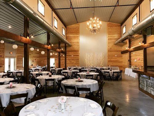 Creekside Acres is a beautiful 4,200sf monitor style barn where you will find a spacious 3,150sq. foot "Great Room" with soaring 25 foot ceilings that will accommodate seating for 200 guests.