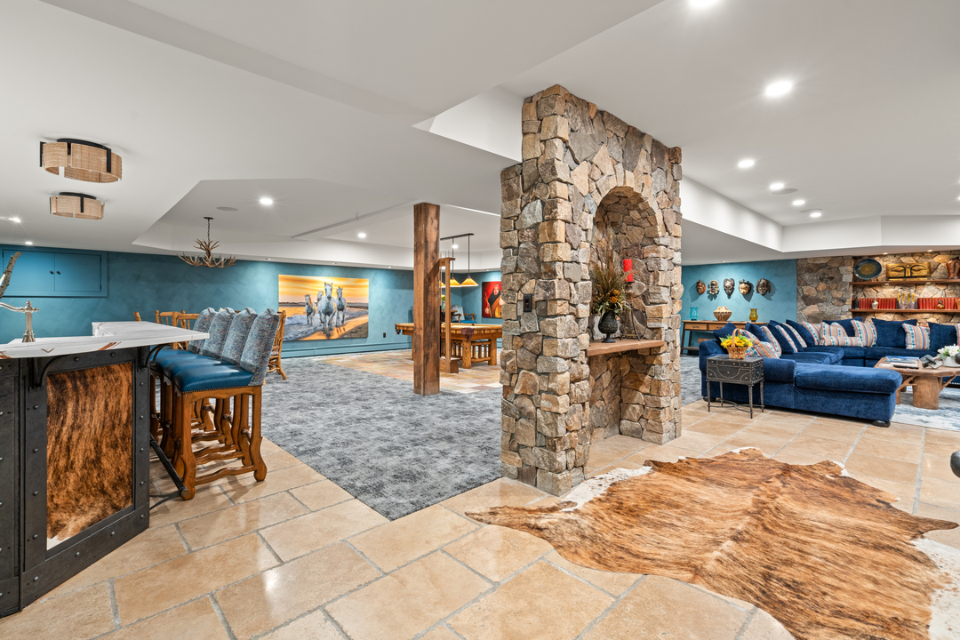 Inside, you’ll find reclaimed antique flooring, hand-hewn timbers, and masterful stonework that exude both grandeur and warmth. The spectacular master suite opens with French doors to a private patio—ideal for sunrise coffee or starlit champagne toasts. Guest rooms are oversized and all en-suite, ensuring comfort and privacy for every visitor. The lower level boasts a theatre-quality media room, a wine cellar, fitness suite, sauna, and game area—making it as entertaining as it is relaxing.