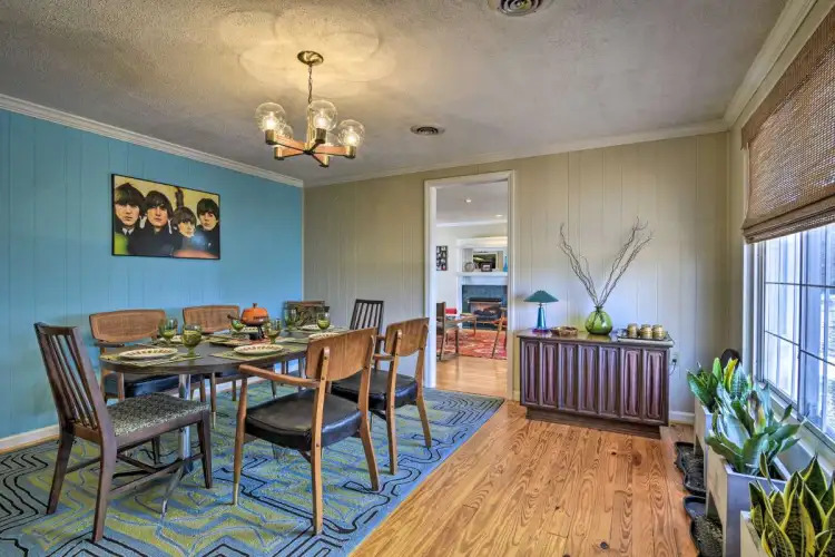 Experience the magic of the 1960s at Fab 4 Village. The Beatles-inspired decor consists of many unique places to stay and/or hold an event. The fully furnished 4 bedroom ranch home features Mid-century modern decor with large living areas and a fully equpped kitchen.