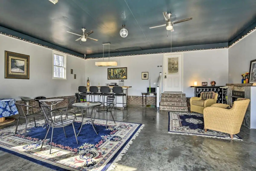 - Outdoor Amenities Including: Authentic period gazebo, large concrete lanai, covered grill, island and garage that has been converted into a spacious bar (The Branch Water Lounge) with a massive 8-foot bar and fireplace. Outdoor space can accommodate larger gatherings.