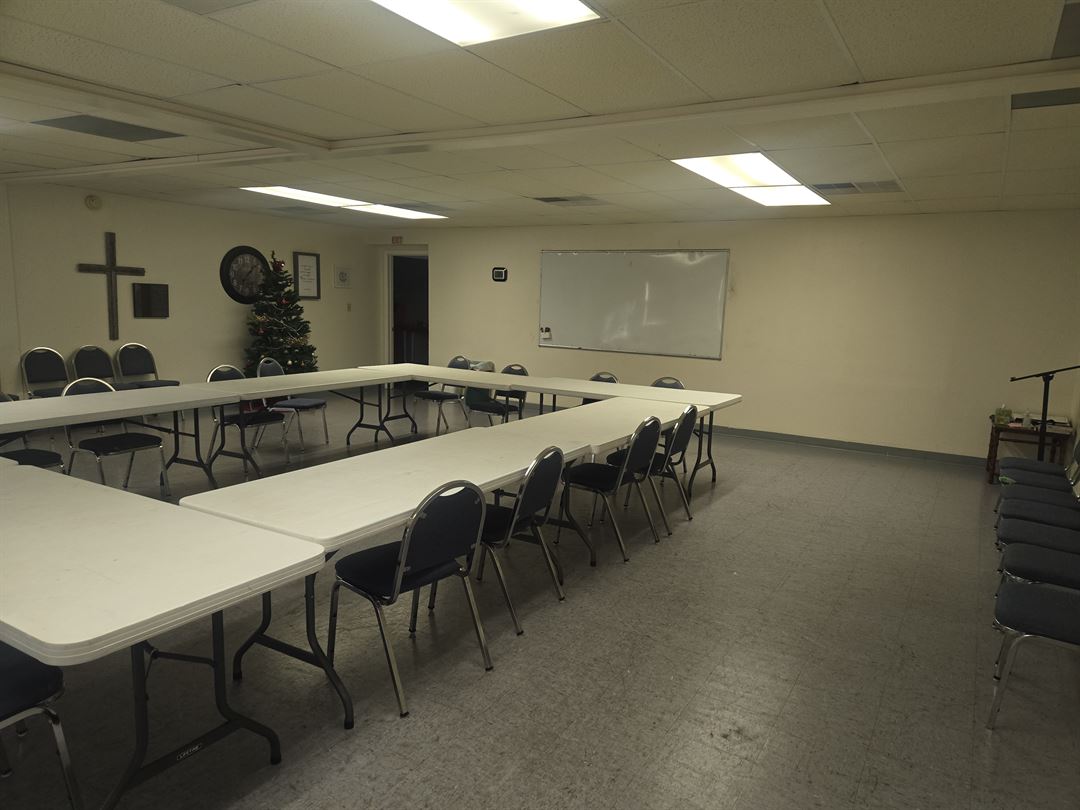 We would be honored to host your next event. We have a beautiful Sanctuary with stained glass windows, rustic light fixtures, and a sound room. Our Fellowship Hall is great for a reception, large event, and can also be used for indoor sporting events. Our kitchen has a large serving window that can open up to the Fellowship Hall, with several sinks, counters, a large food warmer, and more. We have meeting rooms and classrooms that would be perfect for business meetings, baby showers, seminars and more.