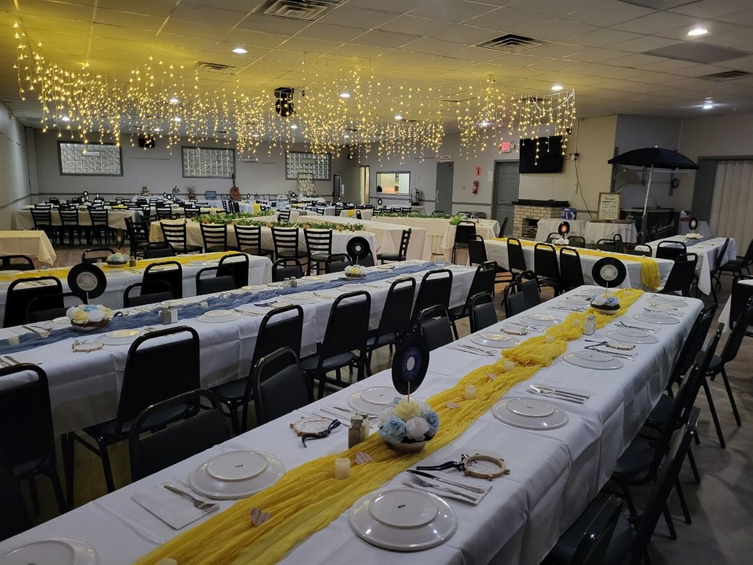 Step into the timeless beauty of the Grand Hall and be captivated by its majestic ambiance. With a seating capacity of 200 guests, the Grand Hall exudes sophistication and charm, making it the ideal setting for your most memorable occasions. Featuring a spacious layout, a large dance floor, and a fully stocked bar, the Grand Hall provides everything you need for an unforgettable event. Our dedicated team is committed to ensuring every detail is perfect, from setup to teardown, so you can relax and enjoy your special day.