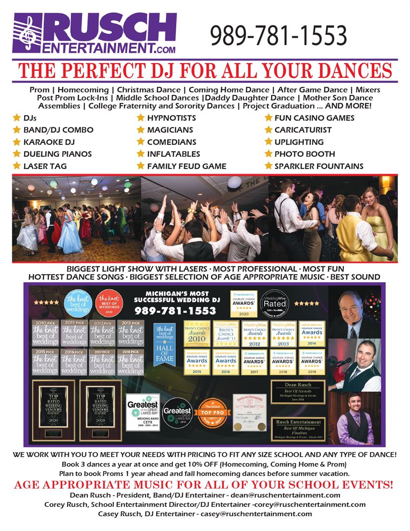 Rusch Entertainment is Michigan's #1 FUN Wedding DJ! Since 1971, we have performed at over 90,000 successful events! We entertain everywhere in Michigan: Lansing–Flint-Bay City–Midland–Saginaw-Grand Rapids–Detroit–Kalamazoo–Thumb- Mt Pleasant - Traverse City - Ann Arbor. We have a larger music collection than any other DJ. Rusch Entertainment Is the Perfect Disc Jockey to make your reception amazing! At Rusch Entertainment, our Classy & Fun entertainers will keep your guests dancing and make your event "the party of a lifetime"! We entertain at every major banquet hall and offer different packages on our award winning disc jockey service! It is my sincere hope that you will give me a Call to discuss your ideas on the music.