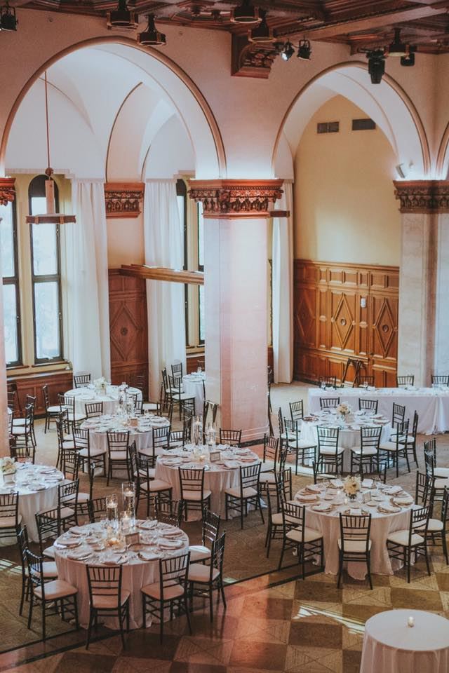 With onsite staff for your entire event, and set up and tear down of our included items, such as mahogany chiavari chairs, stainless steel chargers, china, glassware, flatware, and floor-length white linens, The Ballroom at CityFlatsHotel is the perfect venue. The elegant ambiance combines modern style with historic architecture for an unforgettable event location that gives couples both “something old” and “something new.”